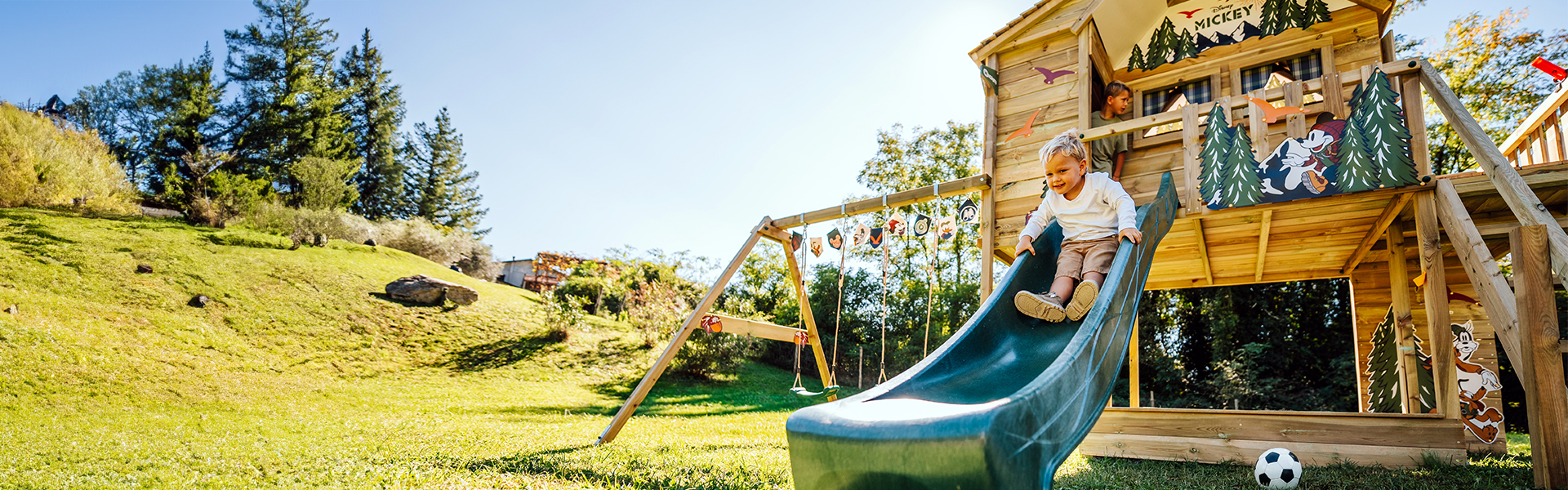 Bine ați venit în magazinul online Wickey, specialistul pentru complexe de joacă și echipamente de joacă, dezvoltate și produse de noi pentru copiii dvs. Echipamentele de joacă din lemn sunt destinate atât utilizării în grădină, cât și utilizării în locurile de joacă publice. Indiferent că este vorba de leagăn, complex de cățărare, ladă de nisip sau complex de joacă cu tobogan: toate echipamentele noastre de joacă pentru exterior conving prin calitatea înaltă, design-ul unic și prețurile atractive!